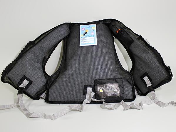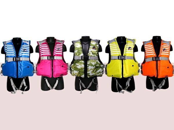法定備品(日本小型船舶検査認定品)ではありませんが、十分な浮力があり安心してご使用いただけます。着用時は必ず股ベルト(未使用時は背面ポケット収納可)を装着し、ファスナーとセーフティーベルトを確実に締めてください。